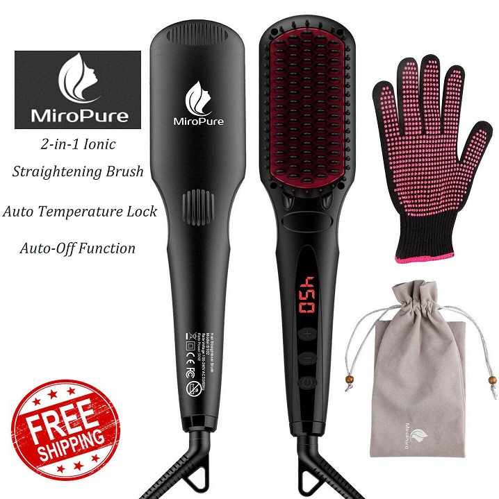 MiroPure Upgraded Ceramic Ionic Hair Straightener Brush for All Hair Types HS01